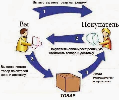 Слово дропшиппинг - dropshipping переводится как «прямая поставка» и подразумевает под собой один из видов предпринимательства, заключающий в себе реализацию товаров от производителя посредством посредника (дропшиппером). Но посредник оплачивает товар поставщика только после того, как сам получил от клиента оплату этого товара. Прибылью посредника является разница между ценой розничной и оптовой.
