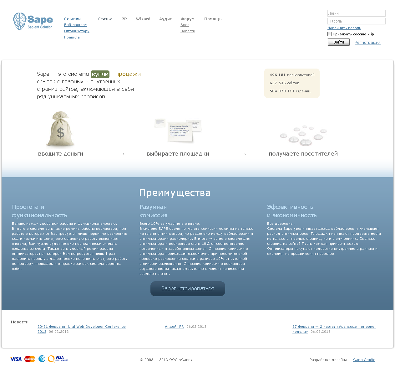 Этот метод заработка, как и второй, также выделен в отдельный сервис - PR.Sape. Опишем основные преимущества этого вида заработка.Видео обзор биржи Сап (Sape).