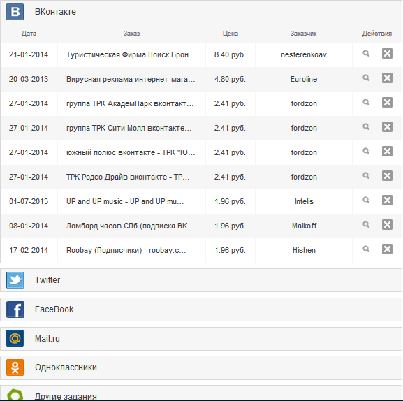 Каждому исполнителю присваивается рейтинг качества. Он зависит от активности и оставленными отзывами от других пользователей проекта. Высокий рейтинг повышает доверие к исполнителю а значит увеличивает количество приглашений на денежные задания.Пример денежных заказов для пользователей (исполнителей) сети ВКонтакте.