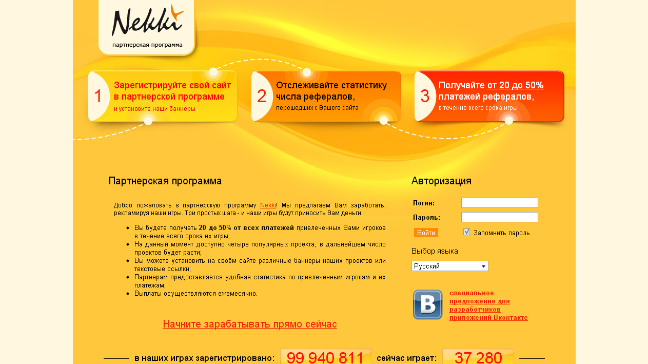 Игровая партнерcкая программа Nekki предлагаем своим партнерам заработать на браузерных играх, рекламируя их в сети интернет.