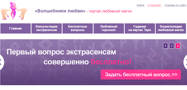 Веб ресурс «Волшебники любви» является первым специализированным порталом любовной магии, где ведущие экстрасенсы, маги и астрологи оказывают своим пользователям платные услуги.Эксперты портала предлагают следующие услуги: