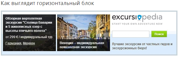 расширенным функционалом. Можно создать виджет любого размера, цвета фона, шрифта, заголовка и подзаголовка, количества выводимых ссылок на экскурсии.Как показывает статистика, изображения в статьях повышают шансы, что они будут замечены потенциальными клиентами. Тематические экскурсии в виджете подбираются автоматически и зависят от географического направления, о котором говорится в статье или выбирается по запросу пользователя.