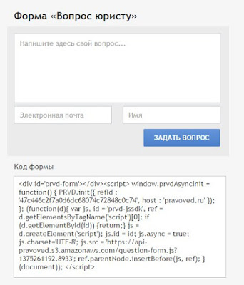 Очень эффективны формы «Вопрос юристу» и виджеты «Все услуги», которые можно интегрировать на свой сайт. Их можно найти в разделе «Формы заказа услуг» (см. рис. ниже).