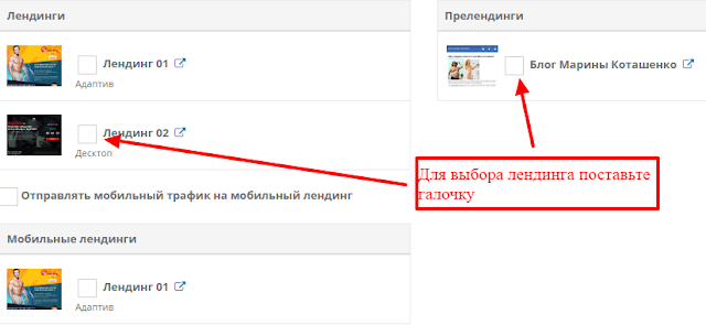 Закладка подключения лэндингов откроется только после того как вы выберите оффер.