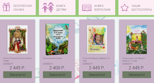 Клиент сам выбирает место действия, время, стиль повествования, повороты сюжета, предоставляет фото и другую необходимую информацию о персонажах. Создание книги ведется довольно продолжительное время. Формы оплаты: предоплата, курьерская оплата, оплата в офисе. Если пользователь не произвел предоплату, то партнер получит свои отчисления только после создания книги, через несколько дней или недель после осуществления заказа.